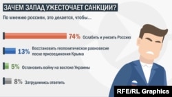 По мнению россиян, Запад, вводя санкции против России, прежде всего стремится к тому, чтобы: